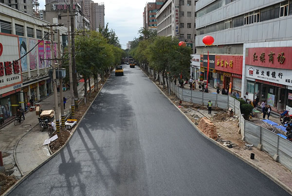 樂育南路以“交通擴容”為原則,將雙向二車道改為雙向四車道,同時在原排水磚砌箱涵的基礎(chǔ)上,將其改造成電力管溝,新建雨水箱涵。除了進行熱力管道維修和雨污分離管道建設(shè)外,把之前的非機動車道向兩側(cè)移動,在人行道上開辟出非機動車道。